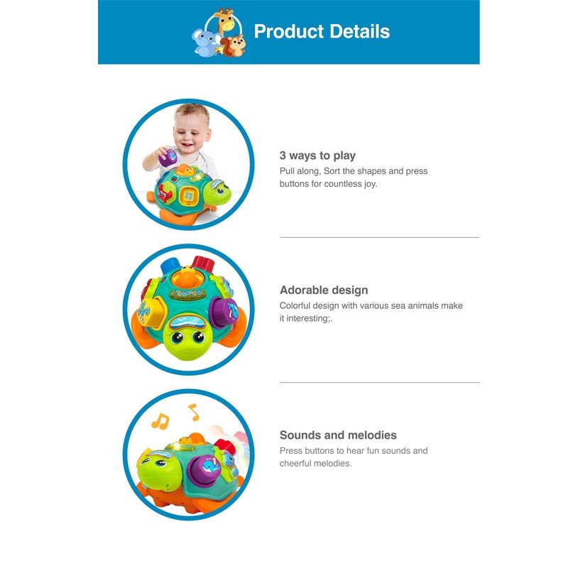 اسباب بازی لاک پشت پازل چند کاره ی با رنگ شاد و جذاب مناسب برایبالای 12 ماه