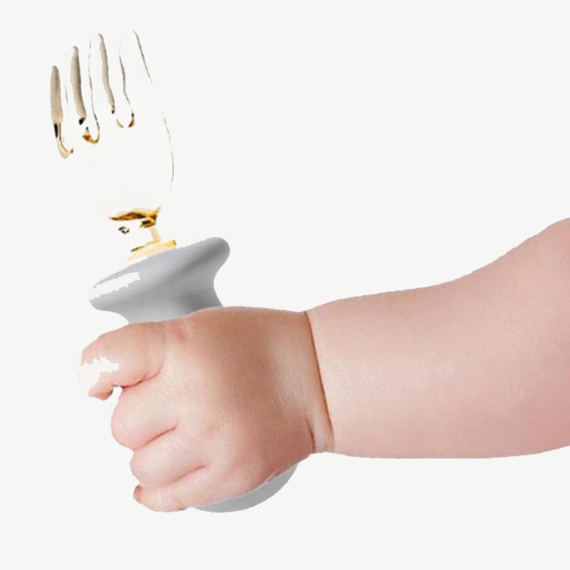 دسته این قاشق و چنگال متناسب با دست ظریف کودکان طراحی شده و از دست آنها لیز نمیخورد